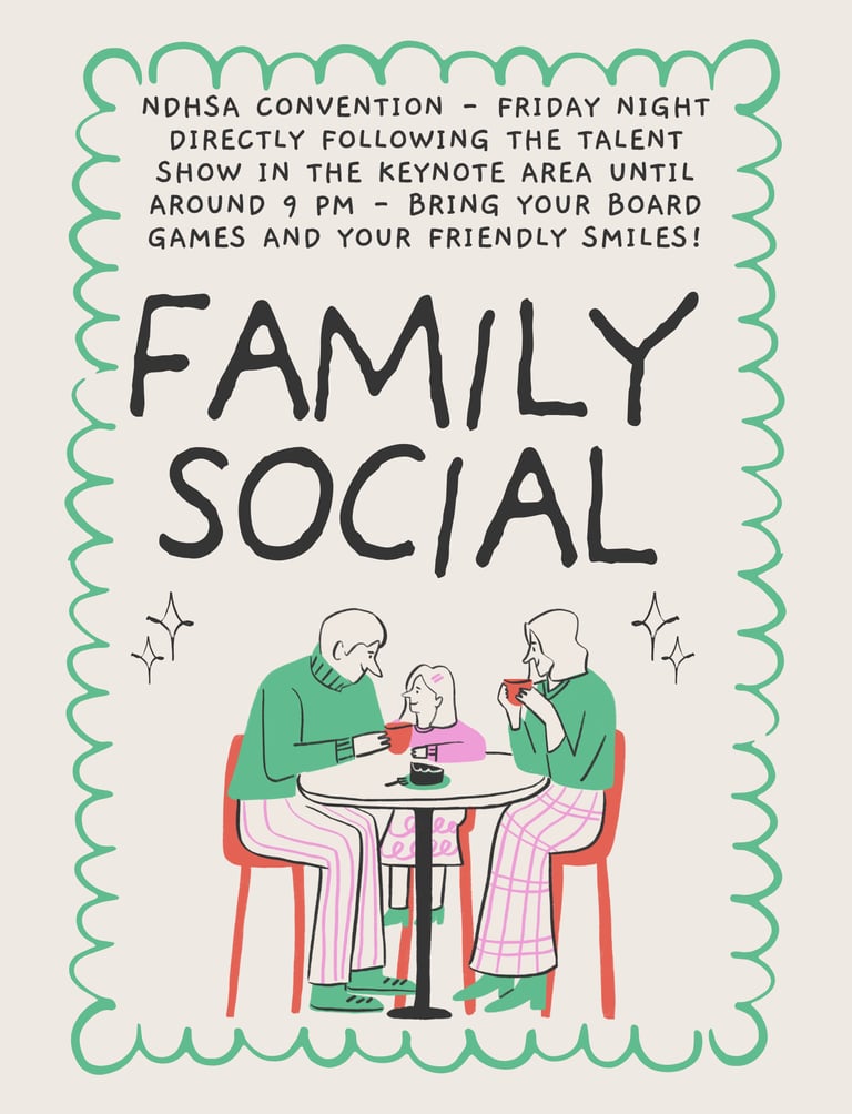 Don't miss the Family Social! It will immediately follow the Talent Show on Friday evening in the Keynote Area at the Alerus Center. Bring your board games and your smiles, and get ready to meet new people!