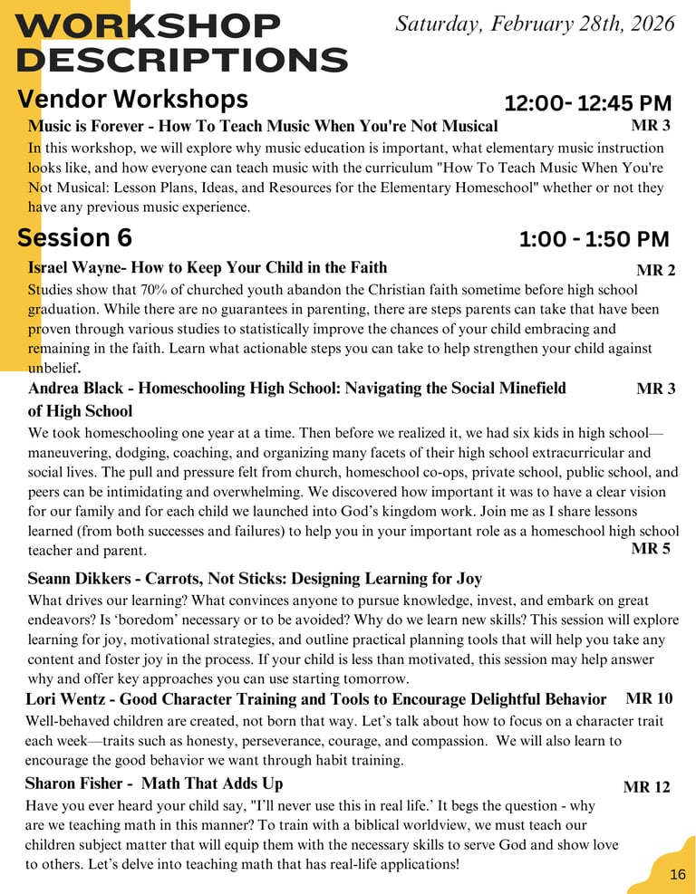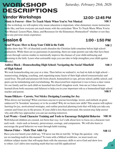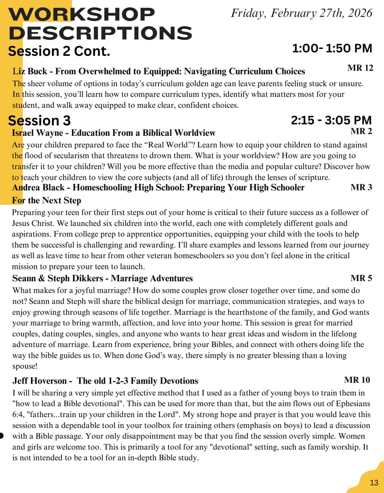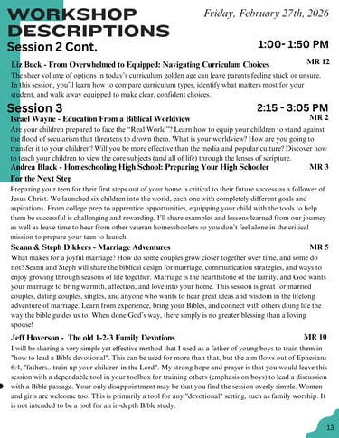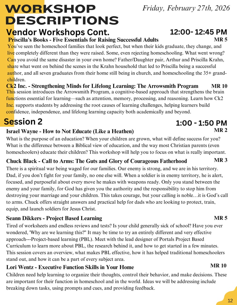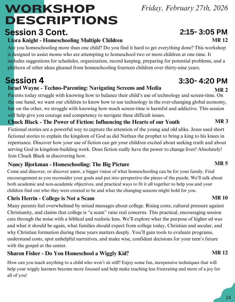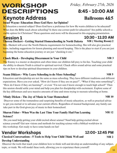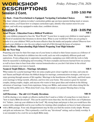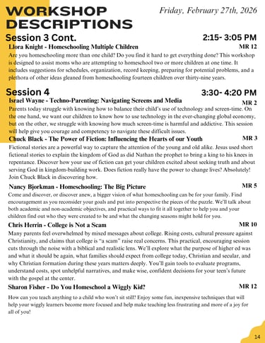 2026 Session Schedule & Descriptions