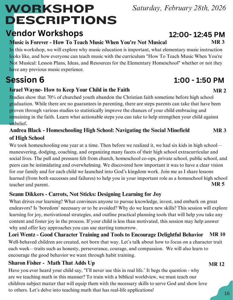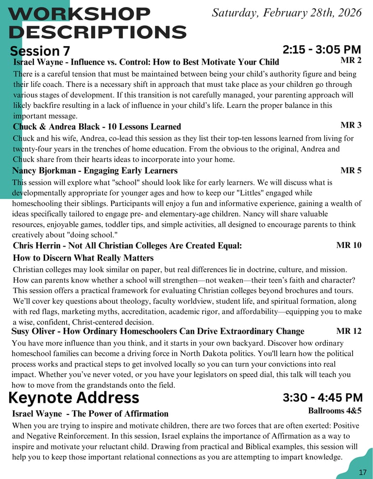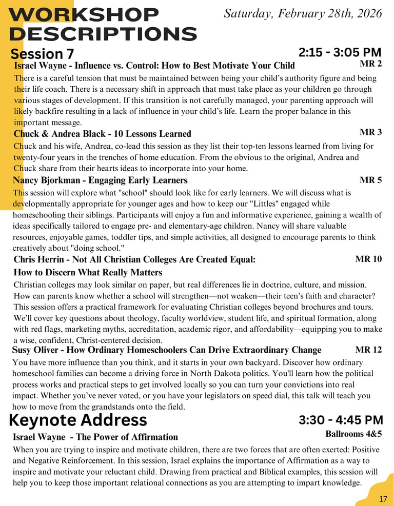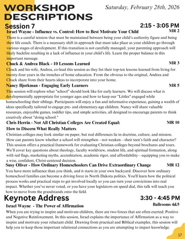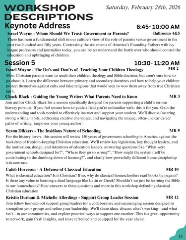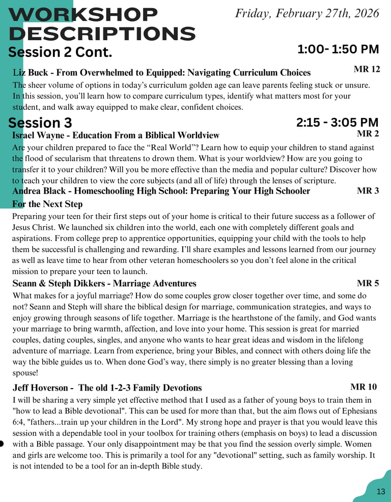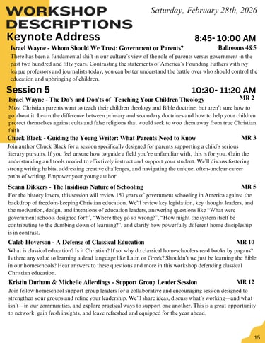 2026 Session Schedule & Descriptions