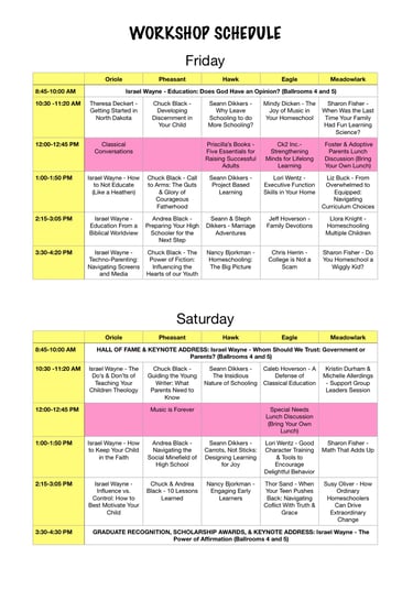 The white sections are keynote and general sessions, and the pink sections represent Vendor Sessions. Please note that the schedule is subject to change, so check back for updates. Middle School sessions will be added at a later date as they are still being finalized.